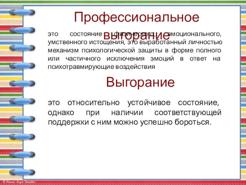 это состояние физического, эмоционального, умственного истощения, это выработанный личностью механизм