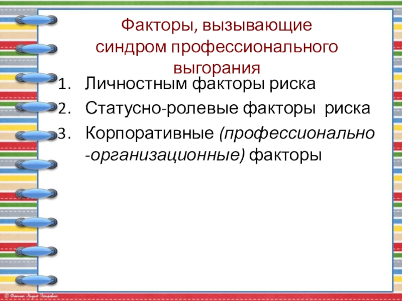 Слайд 6Факторы, вызывающие синдром профессионального выгорания
