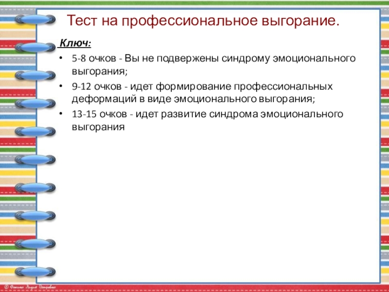 13-15 очков - идет развитие синдрома эмоционального выгорания