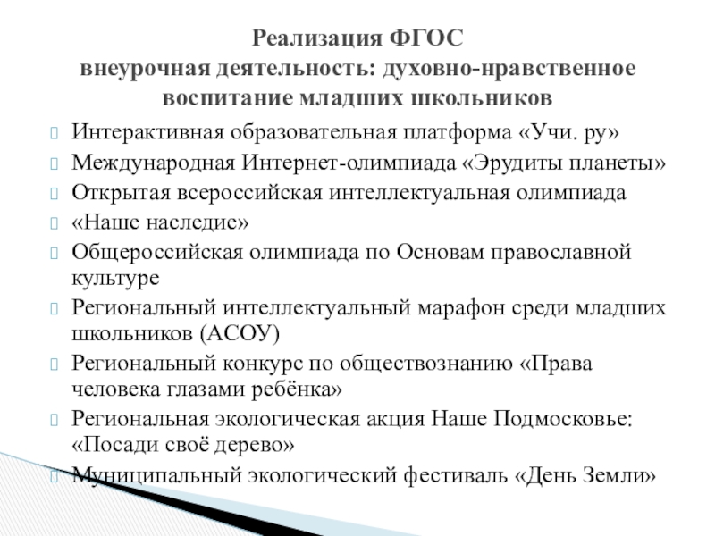 внеурочная деятельность: духовно-нравственное воспитание младших школьников