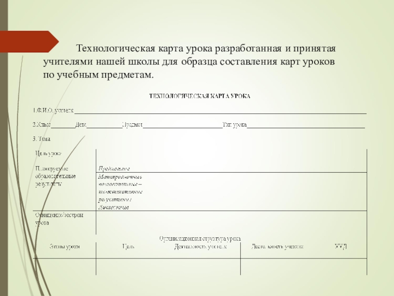 принятая учителями нашей школы для образца составления карт уроков по учебным предметам.