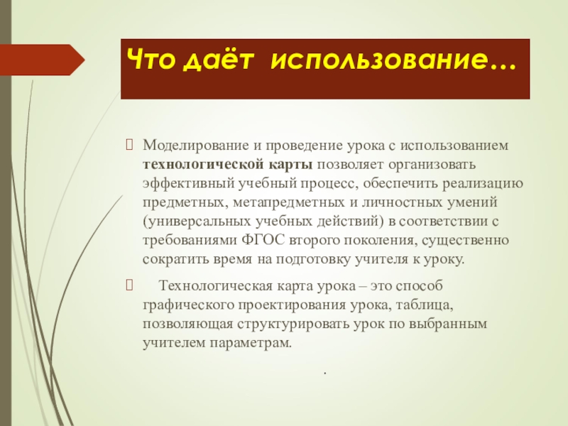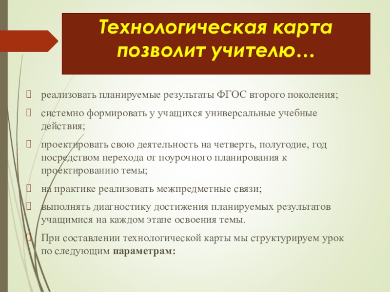Моделирование и проведение урока с использованием технологической карты позволяет