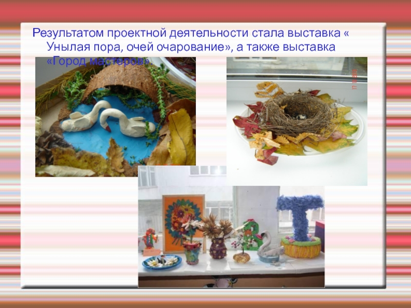 Слайд 16Результатом проектной деятельности стала выставка « Унылая пора, очей очарование», а