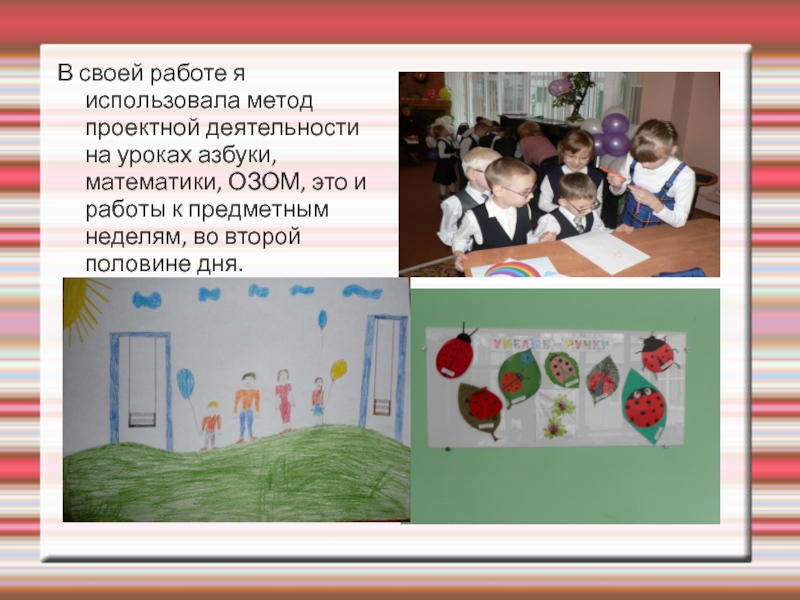 Слайд 9В своей работе я использовала метод проектной деятельности на уроках азбуки,