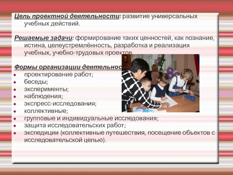 Слайд 3Цель проектной деятельности: развитие универсальных учебных действий.
