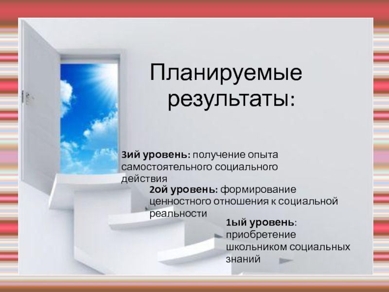 Слайд 51ый уровень:приобретение школьником социальных знаний
