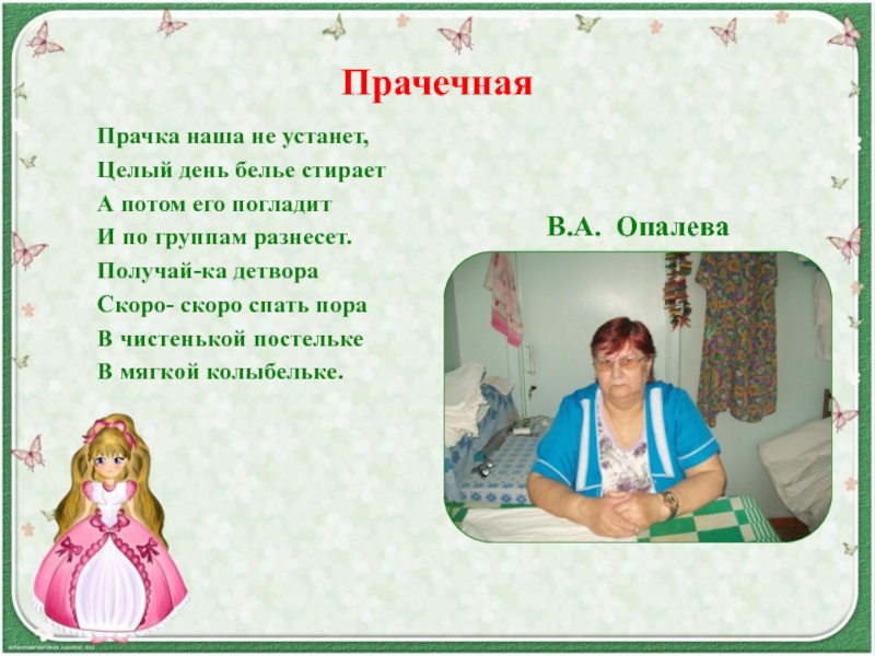 До настоящего времени работают в детском саду и ветераны труда: Опалева Валентина Алексеевна, Капустина Татьяна Владимировна.