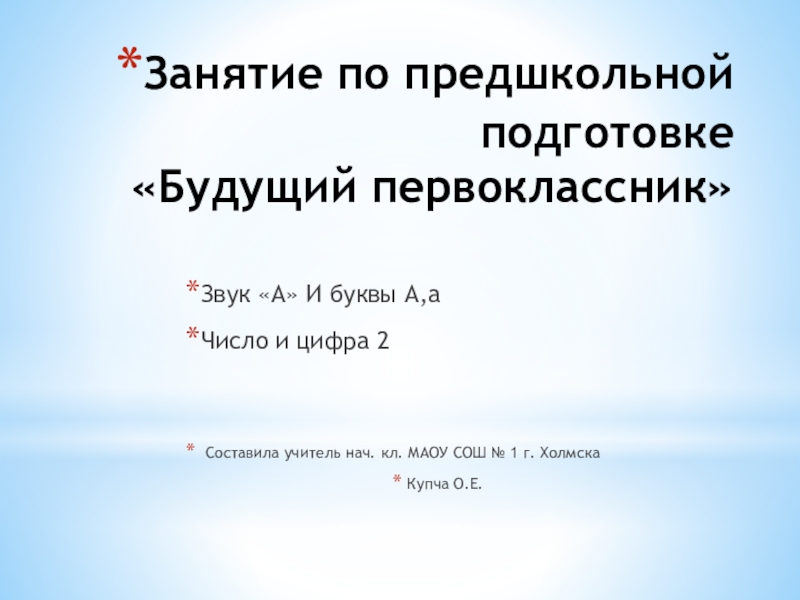 Составила учитель нач. кл. МАОУ СОШ № 1 г. Холмска