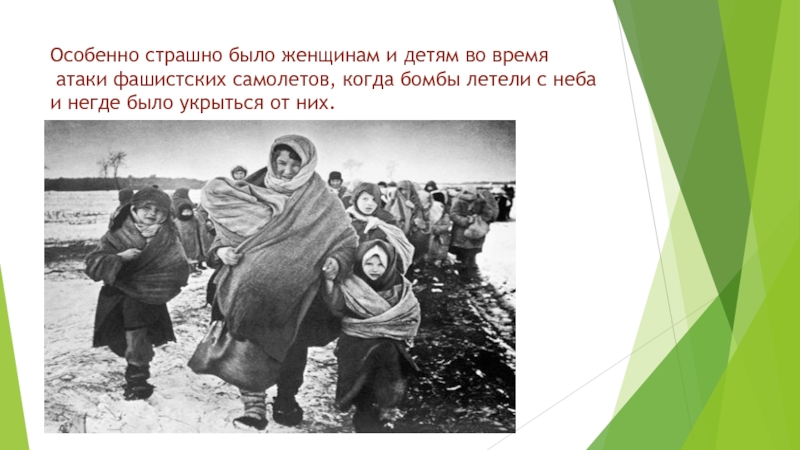 Слайд 6Особенно страшно было женщинам и детям во время  атаки фашистских самолетов, когда