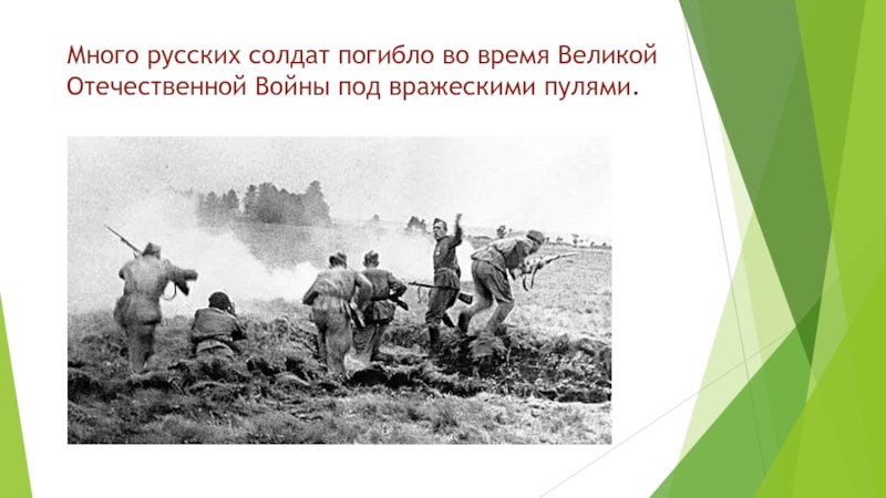 Слайд 7Много русских солдат погибло во время Великой Отечественной Войны под вражескими