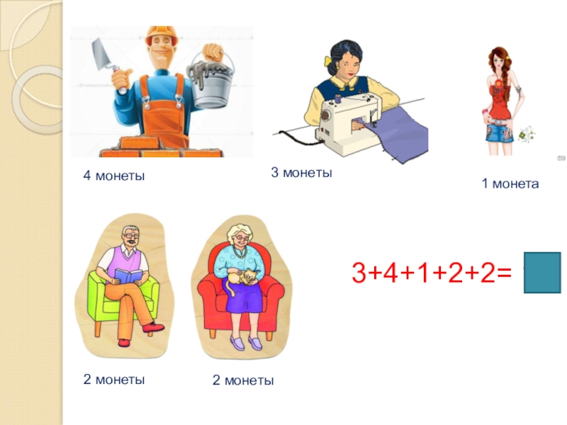 4 монеты3 монеты2 монеты2 монеты1 монета3+4+1+2+2= 12