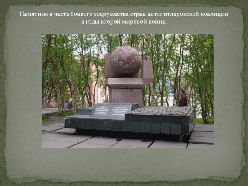Слайд 8Памятник в честь боевого содружества стран антигитлеровской коалиции