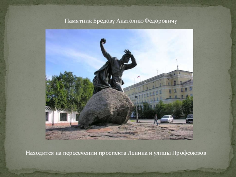 Слайд 12Памятник Бредову Анатолию Федоровичу