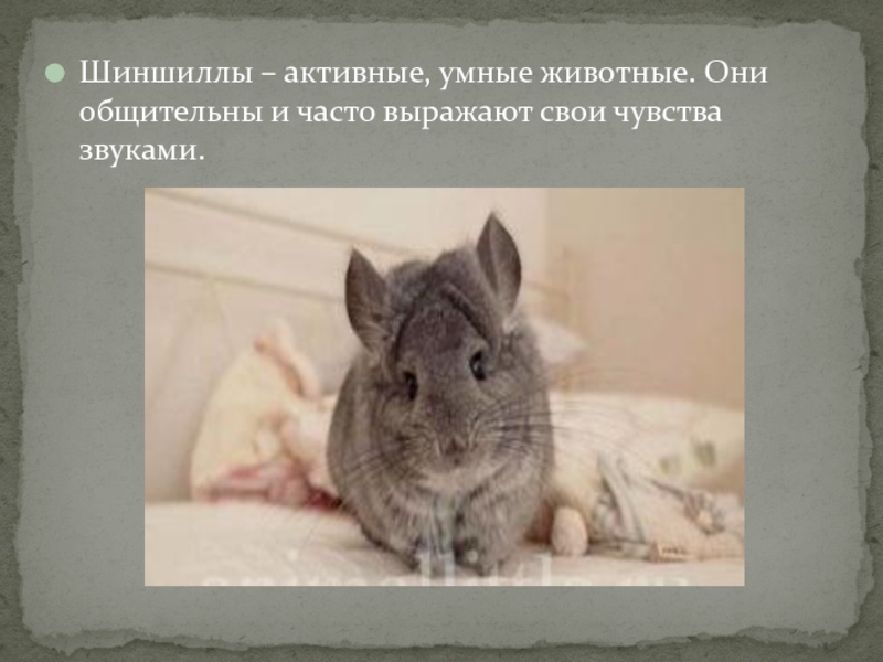 Слайд 9Шиншиллы – активные, умные животные. Они общительны и часто выражают свои