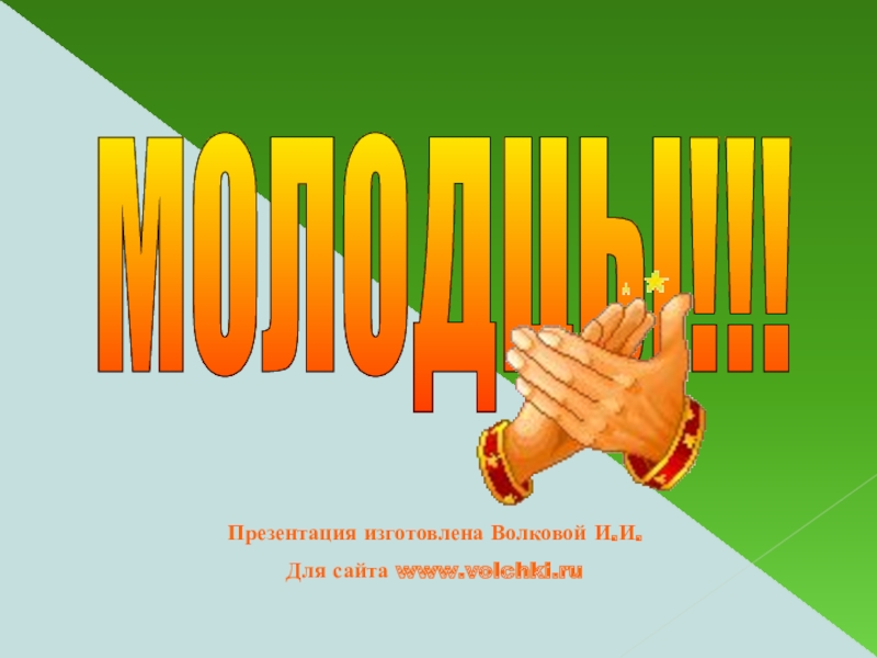 МОЛОДЦЫ!!! Презентация изготовлена Волковой И.И.Для сайта www.volchki.ru