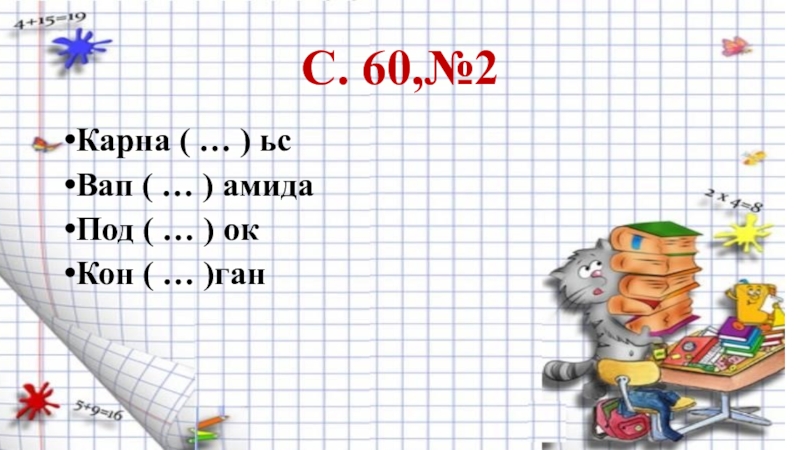 С. 60,№2 Карна ( … ) ьсВап ( … ) амидаПод ( … ) окКон ( …