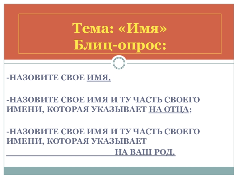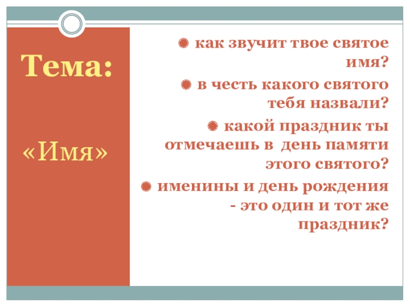 Тема: «Имя»