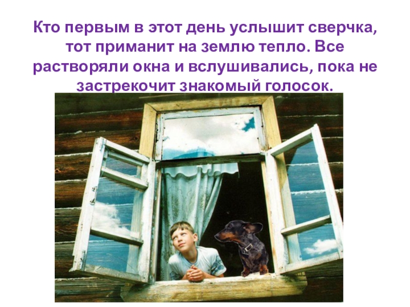 Кто первым в этот день услышит сверчка, тот приманит на землю тепло. Все растворяли окна и вслушивались,