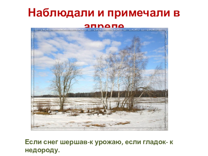 Наблюдали и примечали в апрелеЕсли снег шершав-к урожаю, если гладок- к недороду.