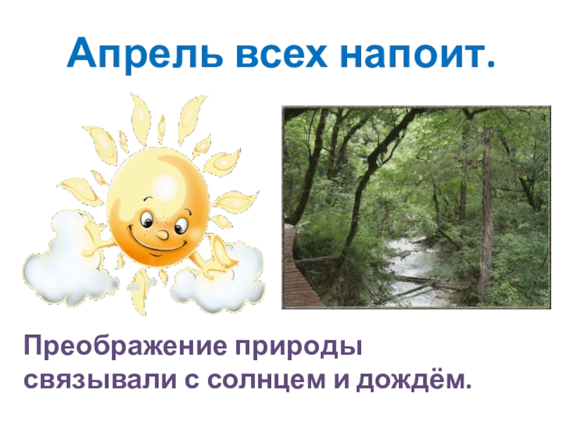 Апрель всех напоит.Преображение природы связывали с солнцем и дождём.