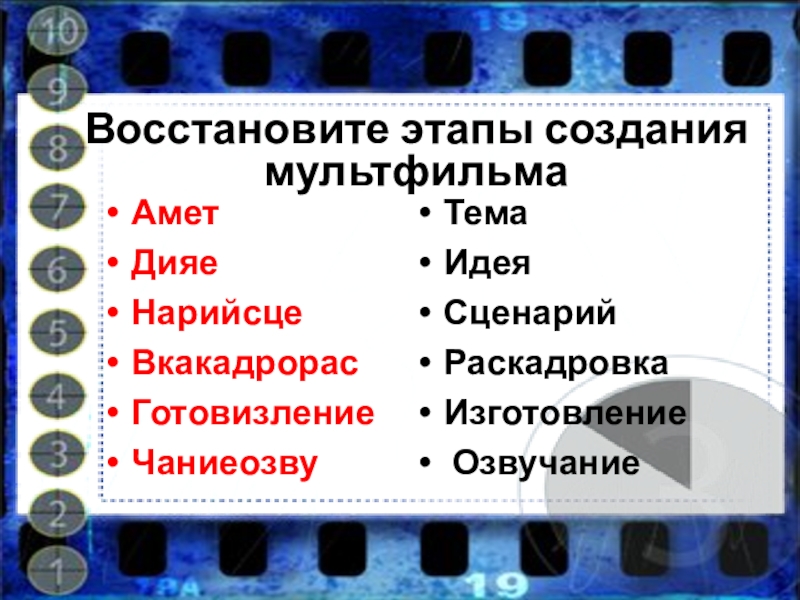 Слайд 9Восстановите этапы создания мультфильма