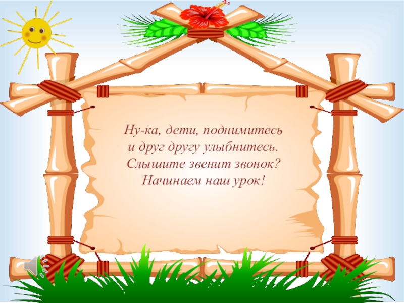 Слайд 1 Ну-ка, дети, поднимитесь и друг другу улыбнитесь. Слышите звенит звонок? Начинаем наш урок!