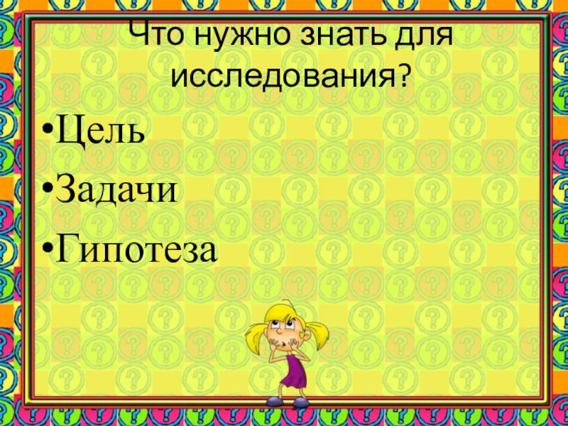 Что нужно знать для исследования?ЦельЗадачиГипотеза