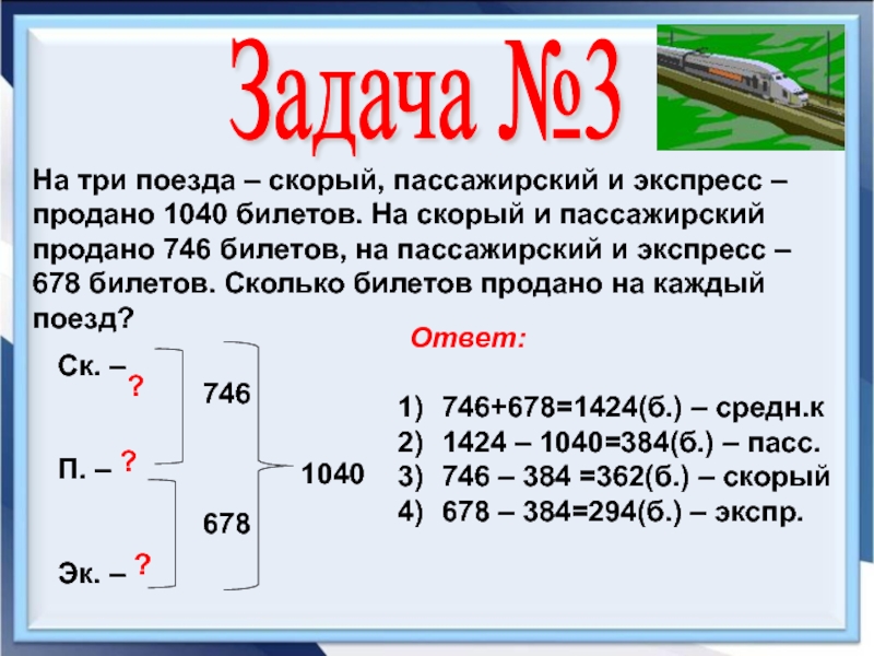 746 – 384 =362(б.) – скорый