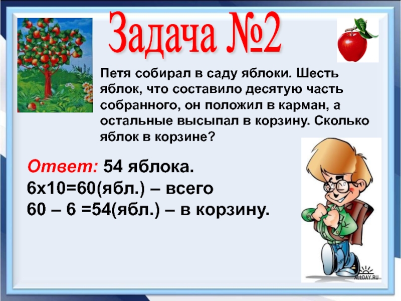 60 – 6 =54(ябл.) – в корзину.