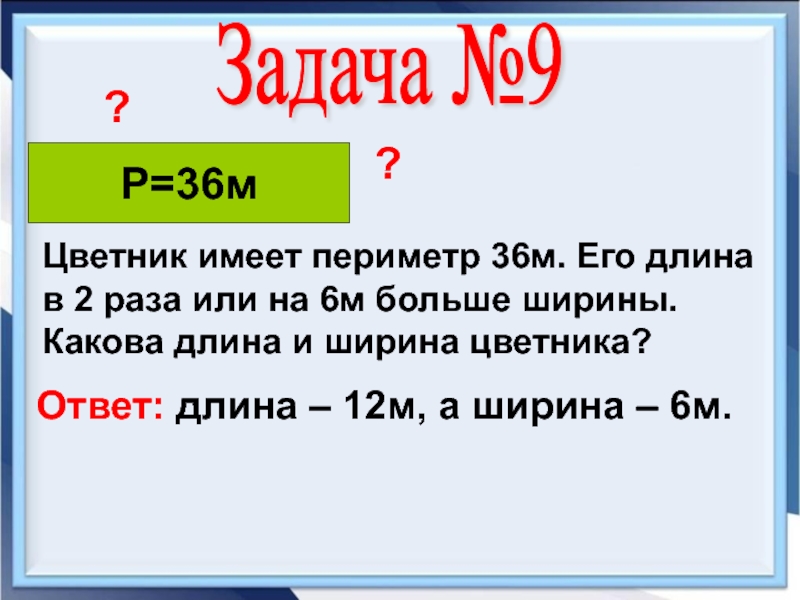 Ответ: длина – 12м, а ширина – 6м.