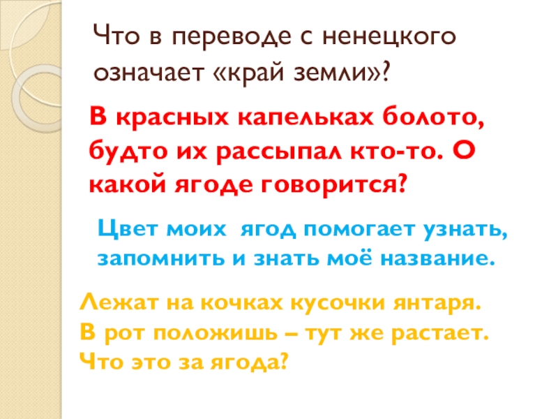 Лежат на кочках кусочки янтаря. В рот положишь – тут же растает. Что это за ягода?