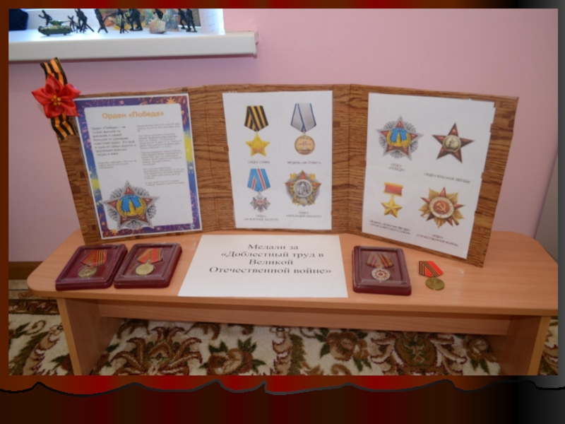 В музеях Боевой Славы хранятся различные экспонаты: военная техника, военное оружие, военные книги, медали героев победителей