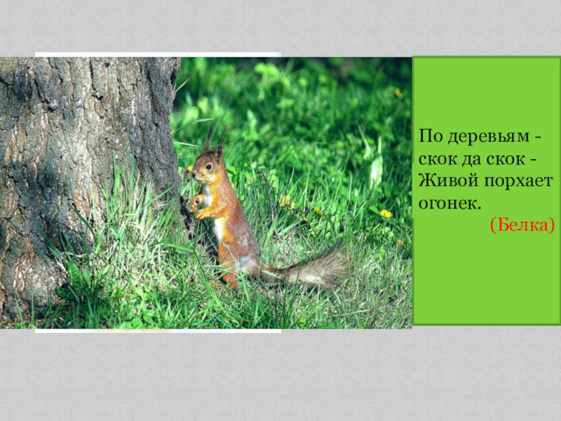 Слайд 7По деревьям - скок да скок -Живой порхает огонек.
