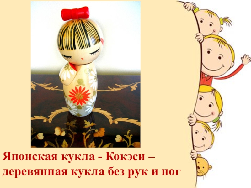 Слайд 4Японская кукла - Кокэси – деревянная кукла без рук и ног