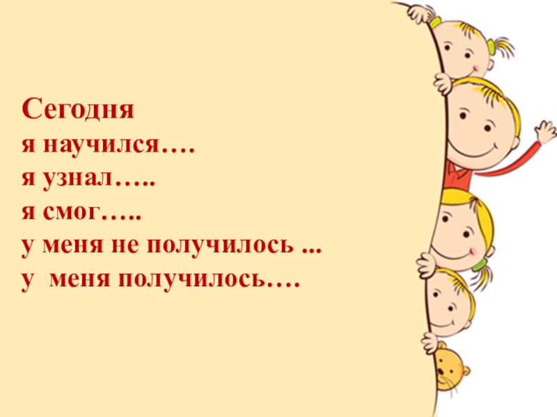 Сегодня я научился….я узнал…..я смог…..у меня не получилось ...у меня получилось….