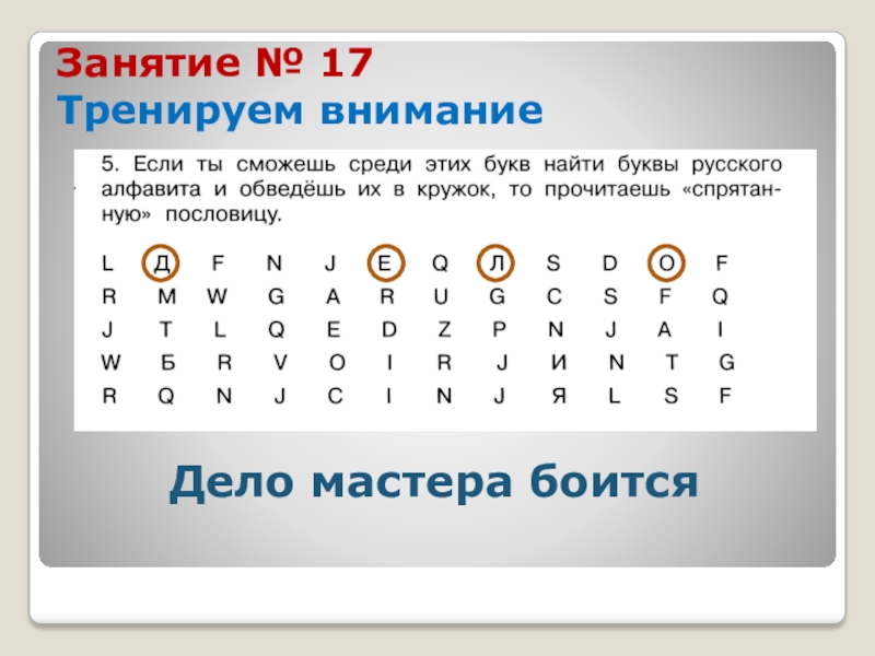 Дело мастера боитсяЗанятие № 17 Тренируем внимание