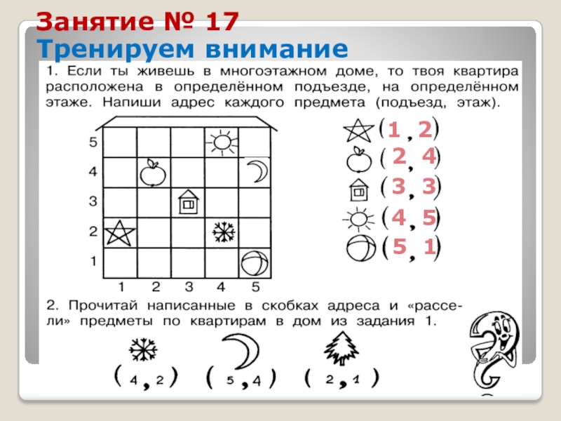 Занятие № 17 Тренируем внимание1 22 43 34 55 1