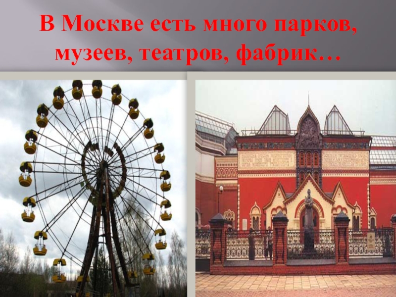 Слайд 18В Москве есть много парков, музеев, театров, фабрик…