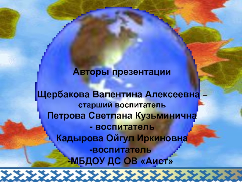 Авторы презентацииЩербакова Валентина Алексеевна – старший воспитательПетрова Светлана Кузьминична- воспитательКадырова Ойгул Иркиновнавоспитатель МБДОУ ДС ОВ «Аист»
