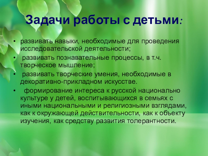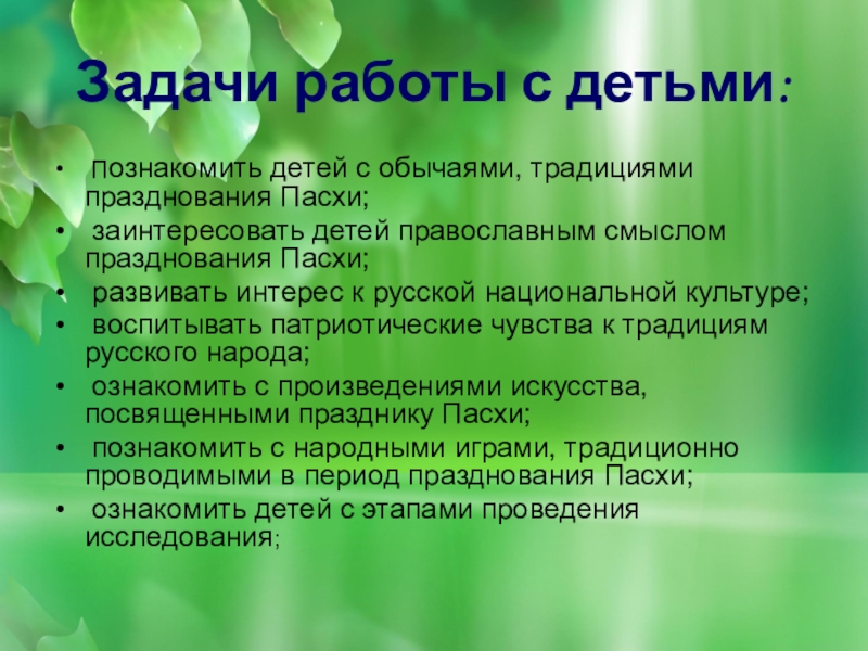 Задачи работы с детьми: