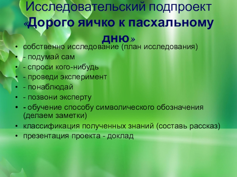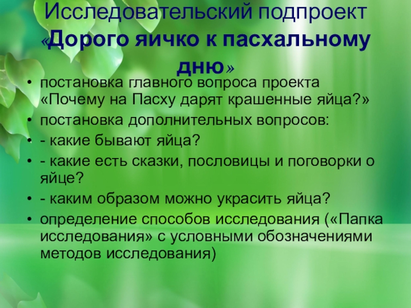 Исследовательский подпроект