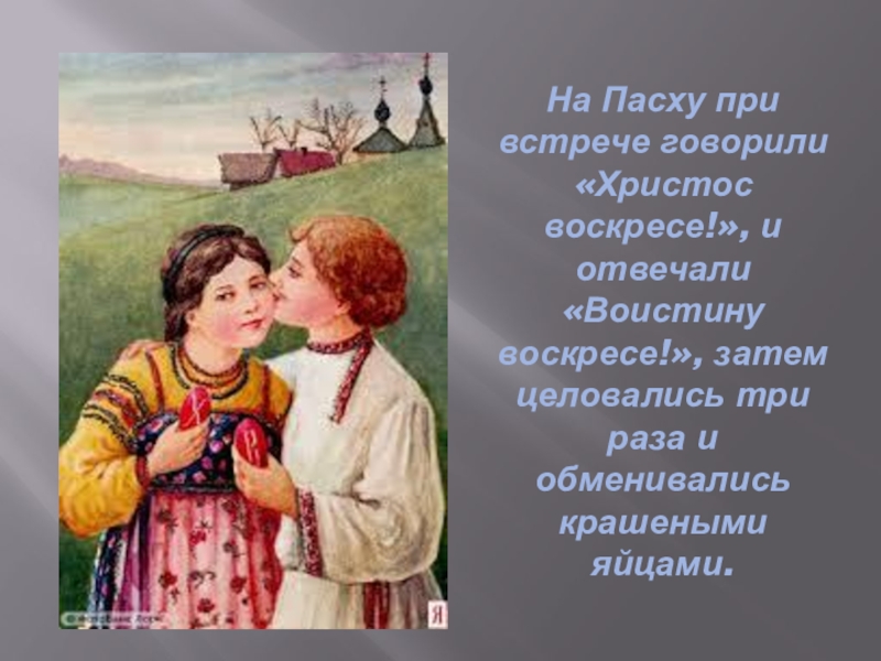 Слайд 8На Пасху при встрече говорили «Христос воскресе!», и отвечали «Воистину воскресе!»,
