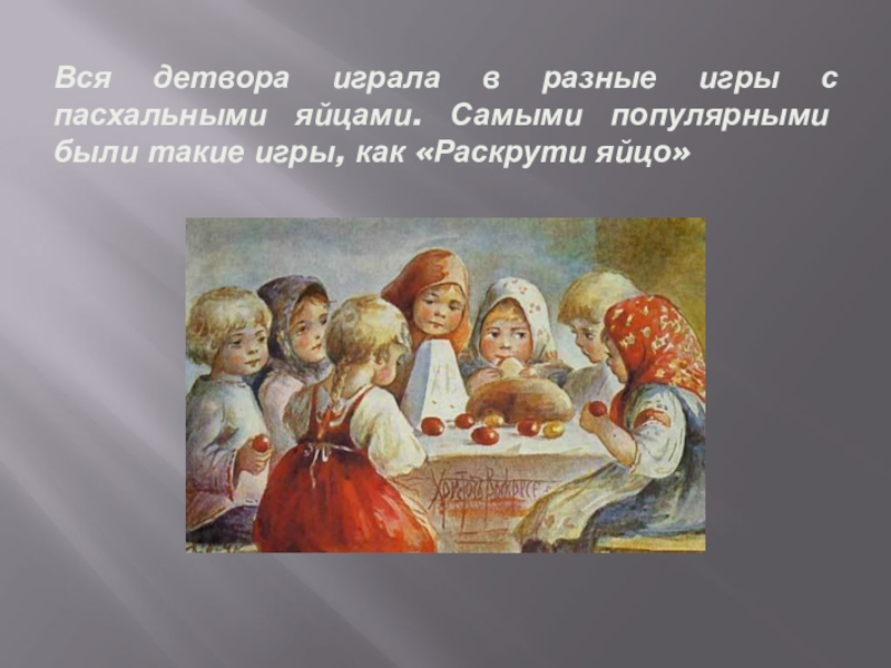 Слайд 10Вся детвора играла в разные игры с пасхальными яйцами. Самыми популярными