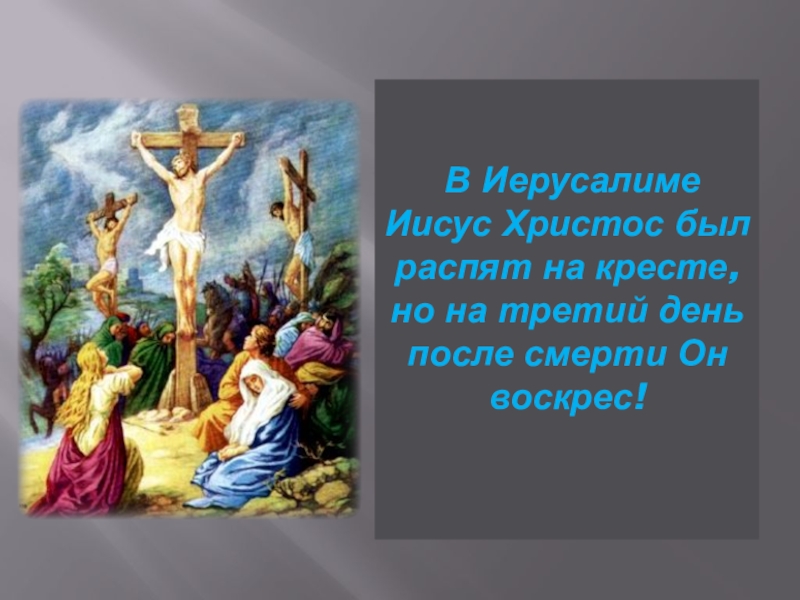 Слайд 3 В Иерусалиме Иисус Христос был распят на кресте, но на