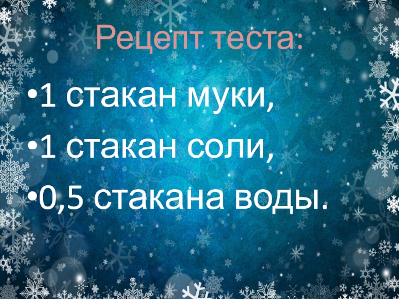 Рецепт теста:1 стакан муки,1 стакан соли,0,5 стакана воды.