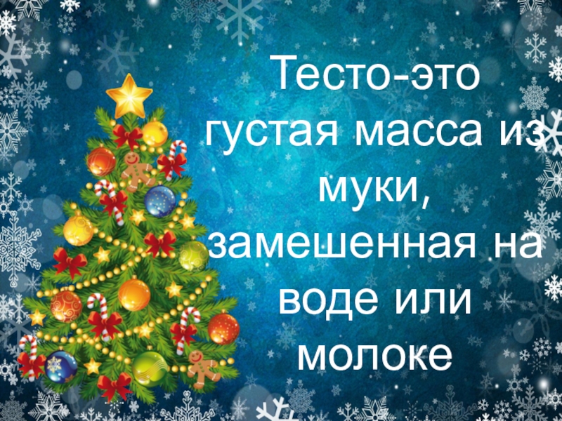 Слайд 2Тесто-это густая масса из муки, замешенная на воде или молоке