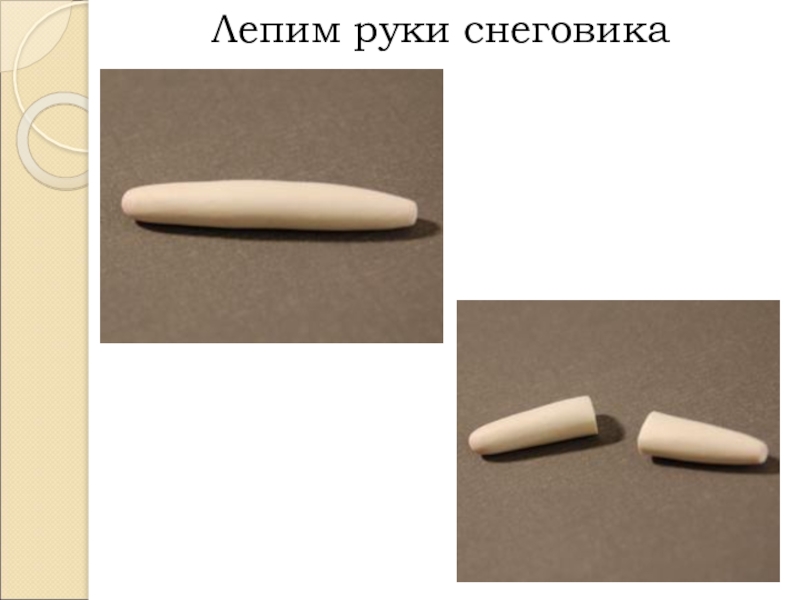 План работы:1.Беседа о зиме.2.Обсуждение частей, из которых состоит снеговик.3.Лепка трех шариков разного размера.4.Лепка головы снеговика.5.Лепка рук