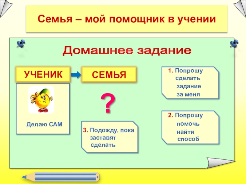 Семья – мой помощник в учении?Домашнее задание