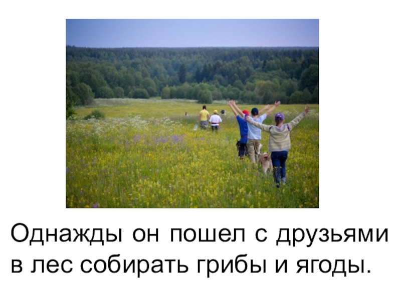 Слайд 3Однажды он пошел с друзьями в лес собирать грибы и ягоды.