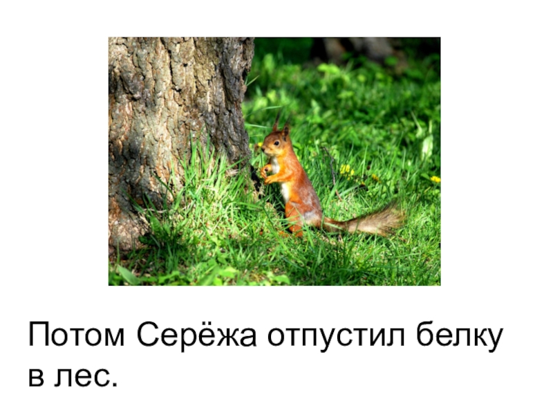 Слайд 7Потом Серёжа отпустил белку в лес.